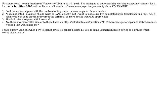 Ubuntu: Lexmark Intuition S505 Scanner not detected by Simple Scan