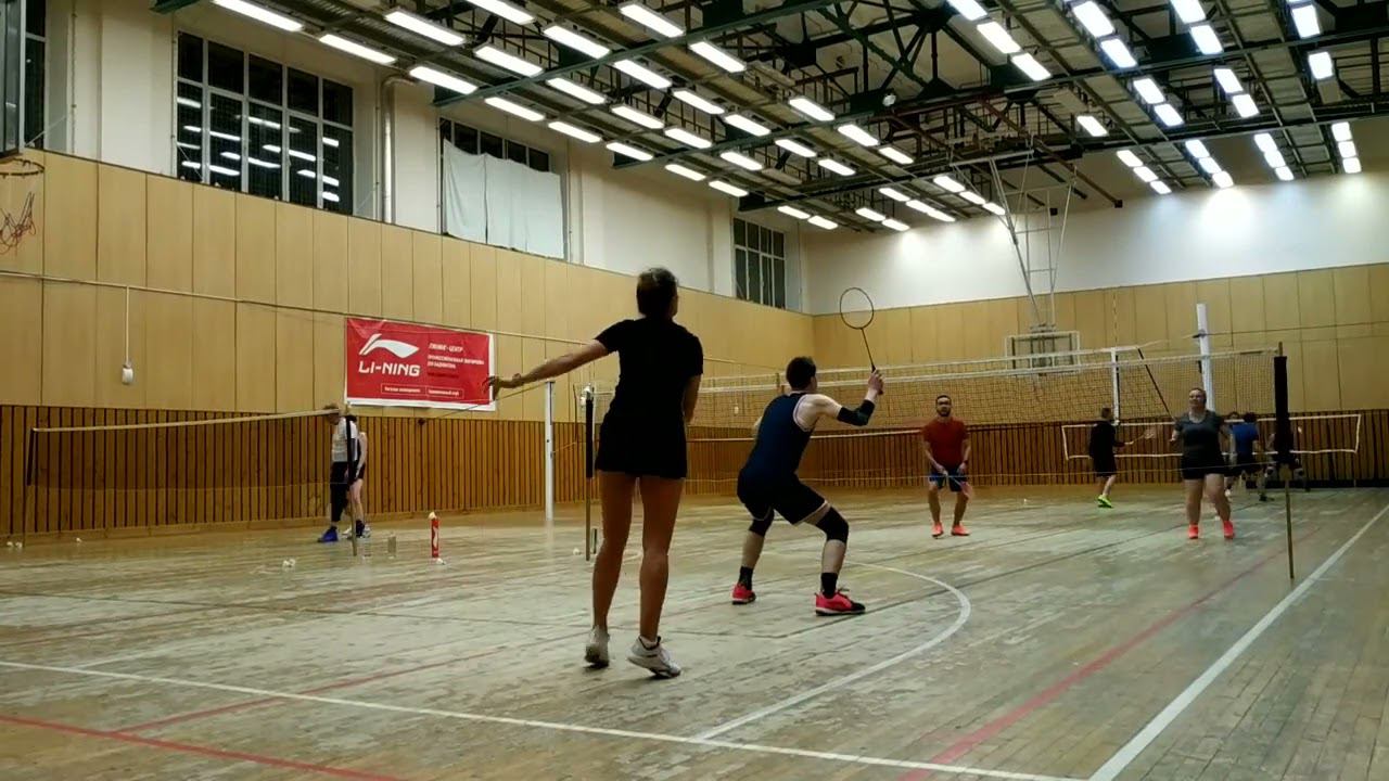 Тренировочная игра в бадминтон через сетку. Играют любители, новички и опытные бадминтонисты. Игра в Лестехе (МГУЛ ранее, сейчас называется филиалом Бауманки). Хочешь тоже играть? Приходи - https://badminton77.ru/map/4/ #badminton #badmintonlovers #badmintonrussia #lesteh #ЛесТех #бадминтон