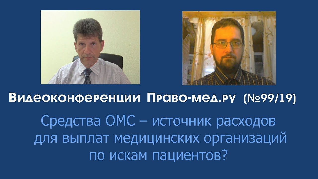 Видеоконференция Право-мед.ру № 99 (19) от 9 августа 2018 года, на которой обсуждались вопросы отсутствия законодательства по страхованию гражданской ответственности медицинских организаций перед пациентам при оказании медицинской помощи Тема: Средства ОМС – источник расходов для выплат медицинских организаций по искам пациентов? Рассмотренные вопросы: 1. Почему до сих пор не принят федеральный закон по страхованию медицинских организаций на случай причинения вреда жизни и (или) здоровью пациента при оказании медицинской помощи? 2. Какие возможны механизмы использования средств ОМС для оплаты страховых взносов в целях страхования гражданской ответственности медицинских организаций перед пациентами? 3. Когда ожидать появления федерального закона по страхованию медицинских организаций на случай причинения вреда жизни и (или) здоровью пациента при оказании медицинской помощи? Участники Панов Алексей Валентинович, главный редактор информационного портала Право-мед.ру, г. Омск , член АЮР Гаганов Дмитрий Борисович, юрист в сферы медицины, г. Санкт-Петербург