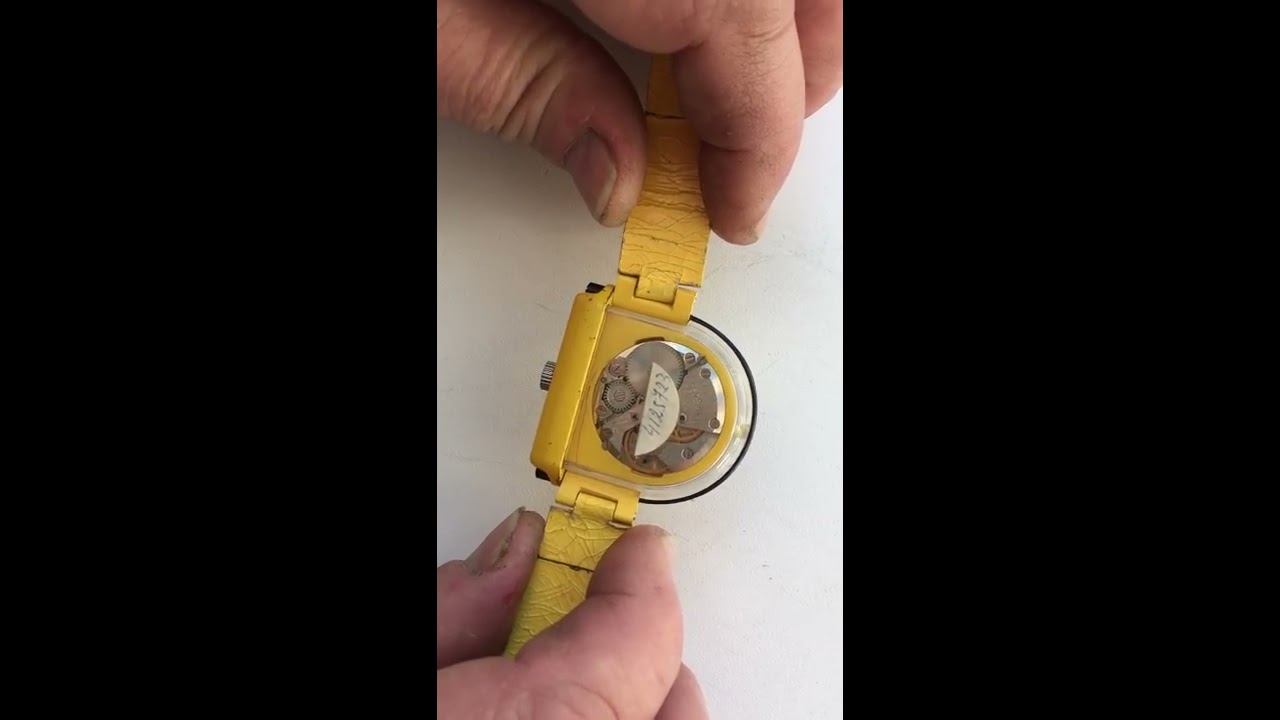 Водонепроницаемая Ракета с оригинальным ремешком, разработка конца 1980-х. Это единственный известный экземпляр таких часов, ранее были представлены только в каталоге 1989 г., а также в советской видеорекламе Ракета. Оригинальная конструкция: корпус выполнен в виде плоского "стакана" с крышкой. Уплотнительная резинка квадратная, под крышкой. Механизм с циферблатом вставляются в желтый литой пластмассовый корпус с крышкой, и вся эта конструкция вставляется в так называемый прозрачный "стакан", изготовленный из оргстекла. Дуга на концах имеет резьбу и гайками стакан крепится к корпусу. Корпус не имеет ушек т.к. ремешок одевается на дугу и вся эта конструкция закрепляется двумя гайками. На задней части оргстекла заводская музейная бирка с номером внешнего оформления (4125723). Механизм «Плоская Россия» 2609.НА
