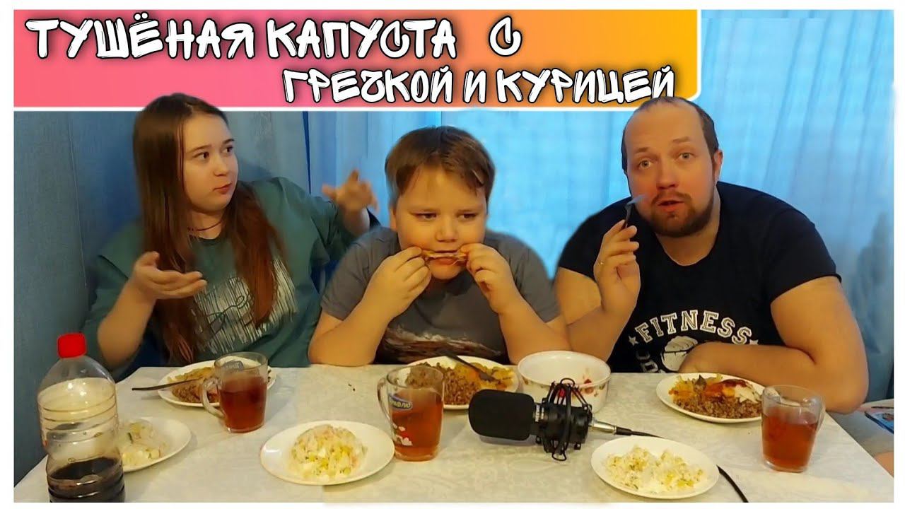 МУКБАНГ//Тушёная капуста с гречневой кашей и курицей//Крабовый салат с огурцом//Простая жизнь//ВЛОГ