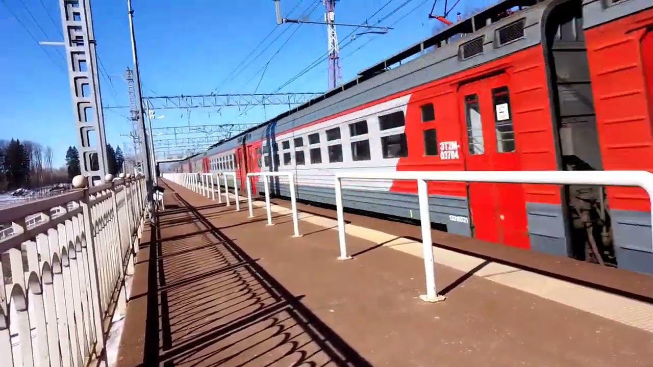 Приветливая электричка ЭТ2М на скорости 122 км/ч по ст. Малино.