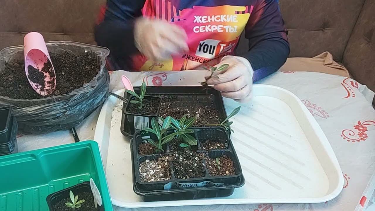 Пикировка адениума, выращенного из семян. #адениум #розапустыни #изсемян #пикировка #комнатныерастения #женскиесекреты #посадка Адениум (роза пустыни). Выращивание из семян. Посев (ч.1) https://www.youtube.com/watch?v=NDYRYChV4fw