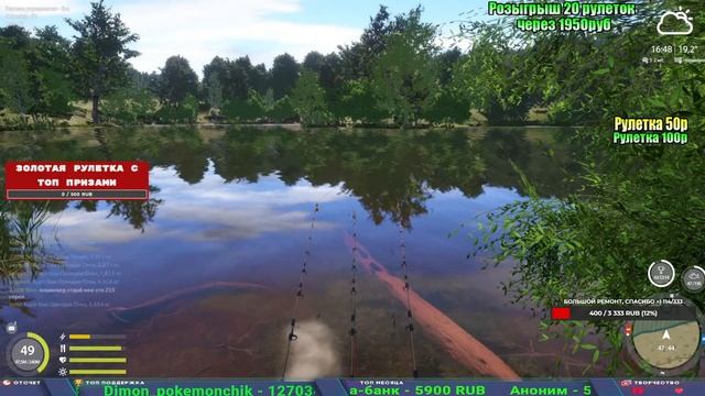 Поддержка донатом https://new.donatepay.ru/@1032463 Альтернативный донат https://www.donationalerts.com/r/kalyamba11 5536913964533059 карта Тинькоф Если стрим лагает,смотри стрим на трово https://trovo.live/s/Kalyamba_na_Ribalke Тг https://t.me/kalyamba_na_ribalke Мой ВК - https://vk.com/kalyantv НИК в игре kalyan11 НАШ ДС https://discord.gg/4ZzSQkQtsK Заказ водоема на 1 час - 500р ( весь стрим 2500р ) Модерка на канале 1300р ( каждая следующая на 100р больше) ✅Призы в рулетке "ЗОЛОТАЯ" 500р ✔ ЗОЛОТО ✔ ПРЕМ ✔ КАТУШКИ РАПТОР 40, ВЕНГИ, ТАЙГА, СИЛЬВЕР 80, И другие ✔ ПАЛКИ ПИЛКЕРНАЯ, ДОНКА МОРСКИЕ, ✔ РОД ПОД, СТУЛЬЯ ✅Призы в рулетке СТАНДАРТ : 100р ✔ катушкИ РАПТОР 40, ВЕНГИ, ТАЙГА, СИЛЬВЕР 80, И другие ✔ катушки 60 для медного ( ЭВИИ, НАТОРЫ, ГОЛДА, и тд) ✔ ПИЛКЕРНОЕ УДИЛИЩЕ КОРОЛЕВА ОКЕАНА ✔ Морское Донное удилище ✔ прем ( 3, 7, 30 дней) ✔ золото ( 1, 3, 5, 10, 20 ,50) ✔ билет на море ( 1, 3, 5 дней) ✔ голд наживка и др. ✅Призы в рулетке "СТАРТОВАЯ" 50р ✔ катушка Венга ✔ катушка "silver80" ✔ катушка "БЕЛЫЙ КАЛИБР" ✔ катушка "Черный калибр" ✔ катушка "Протон" ✔ катушка "Нарга 6000" ✔ Набор Фидерист и спинингист ✔ Карповик Фортуна ✔ фидерные удилища ✔ прем, золото, алкашка, наживки и тд P.s Рулетка это не казино, а награда за поддержку стримера. Вечный ТОП ПОДДЕРЖКИ (10.06.2025) 1. Леха сварной 214 572 2. Dimon_pokemonchik 127 034 3. Skreb79 103 061 4. Interceptor 96 230 5. FishRus86 82 500