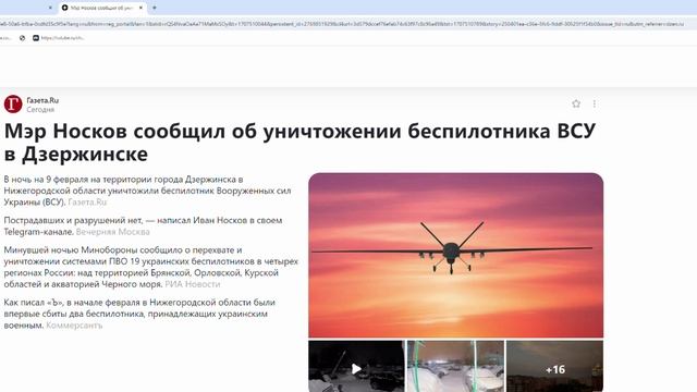 Мэр Носков сообщил об уничтожении беспилотника ВСУ в Дзержинске_ Новости