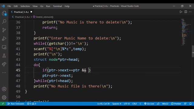 DSA 5-A : Implementing Music Playlist program by Circular Doubly Linked List with diff. Functions !