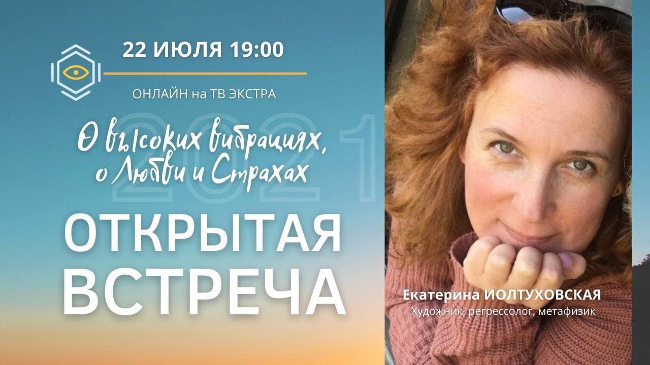 22 июля в 19:00 | Екатерина ИОЛТУХОВСКАЯ - Открытая встреча ОНЛАЙН На встрече поговорим, как выглядят Высокие Вибрации. Чем они отличаются от экстраспособностей, талантов и от Любви. Почему именно в эти странные дни нам они особенно нужны. Как они помогают справиться с бытовыми страхами, и что говорят на этот счет Высшие Я. Присоединяйтесь к встрече Онлайн с художником, метафизиком, регрессологом Екатериной Иолтуховской. ___ https://www.facebook.com/groups/tvextra/ - группа телеканала в Фейсбук https://www.TVExtra.ru - официальный сайт канала ТВ ЭКСТРА