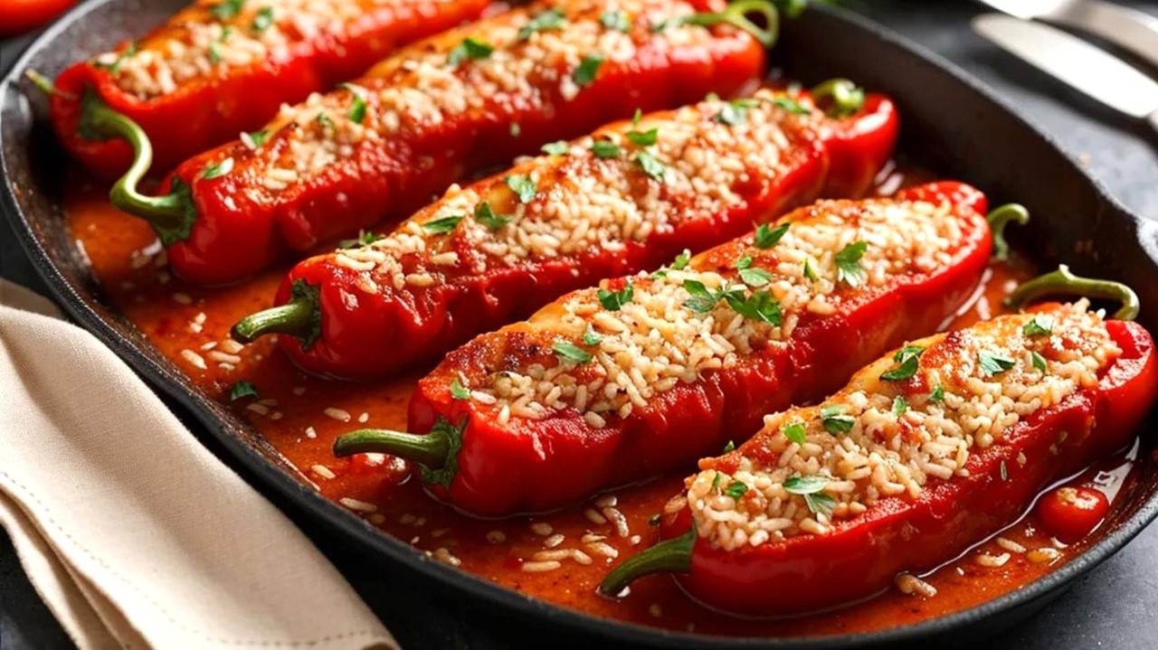 Фаршированный перец с рисом — это блюдо, которое неизменно вызывает у меня теплые воспоминания о семейных обедах. Яркие, сочные перцы, наполненные ароматной начинкой, создают гармонию вкуса и уюта. Каждый раз, когда я готовлю это блюдо, дом наполняется аппетитным ароматом, который собирает всех за столом. Сочетание нежного риса и сочного перца создает идеальный баланс, который радует и насыщает. Фаршированный перец с рисом — это не просто еда, а настоящее кулинарное путешествие, которое я с радостью повторяю снова и снова. Ингредиенты: Сладкий перец – 5 шт. Оливковое масло Луковица – 1 шт. Морковь – 1 шт. Грибы – 230 г Рис – 1/2 стакана Соль Черный перец Куркума Вода – 1,5 стакана Помидор – 1 шт. Укроп Сыр – 150 г фаршированный перец с рисом, рецепт фаршированного перца, как приготовить фаршированный перец, перец, фаршированный рисом, вкусный фаршированный перец,