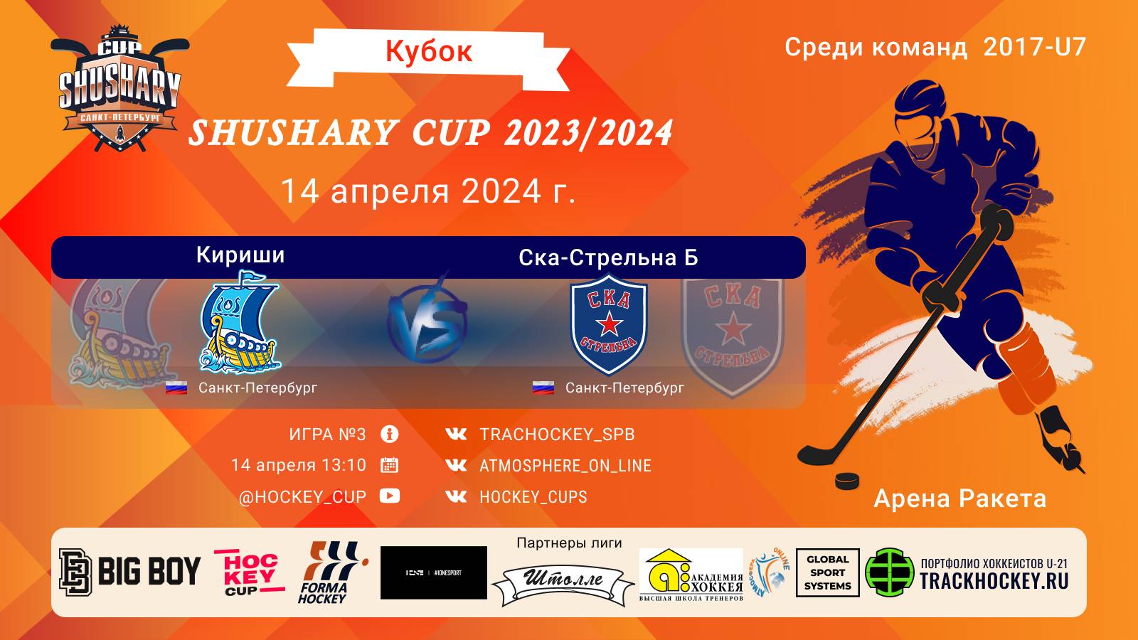КУБОК SHUSHARY CUP среди команд 2017 г.р. (U7), Арена "РАКЕТА" 14 АПРЕЛЯ 2024 САНКТ-ПЕТЕРБУРГ, игра № 3 ХК "Кириши"-ХК "СКА Стрельна Б"/КУБОК SHUSHARY CUP, 14-04-2024 13:10