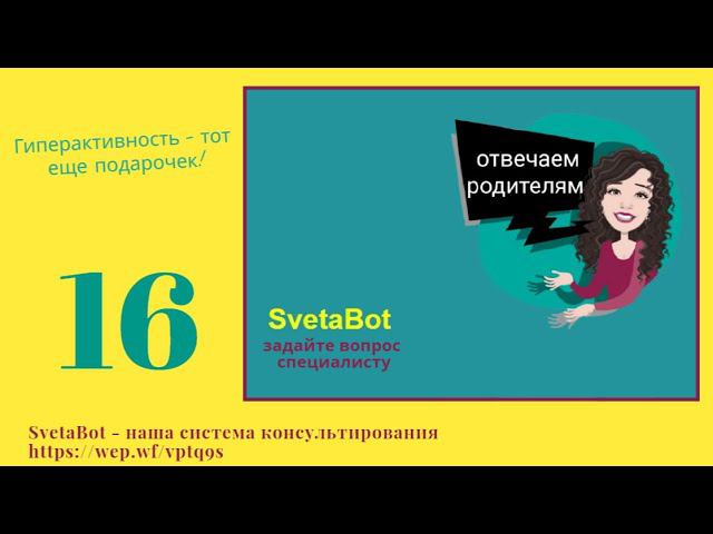 Ольга Жданович - практикующий психолог, специалист по работе с персоналом. Ведущая трансформационной "Игры-О-Сознание: Возможно Все!" Это SvetaBot - наша система консультирования по разным вопросам: работа сайта, консультация по игре, консультация специалиста по продажам, консультация психолога. Вы можете пройти по указанной ниже ссылке и получать полезные видео, от наших специалистов, с ответами на вопросы о психологическом состоянии, психосоматике, отношениях и финансах Список вопросов, рассмотренных в следующих видео: 1) Мы собрались в детский сад 2) Кризис 3-х лет – кризис «Я-сам» 3) Учимся эмоциям – как развивать эмоциональную сферу ребенка 4) Как ответить на 100000 почему, или - не «душите» любопытство 5) Развиваем творческое воображение (5 лет): 6) Скоро в школу – сегодня о ДРУГОМ. 7) Почему ребенок не хочет ходить в детский сад 8) Ребенок агрессирует – это нормально?! 9) Мамины сыночки, папины дочки – гендерный аспект в воспитании 10) Плакса, забияка, капризулька – как реагировать на «негативные» эмоции ребенка 11) Ночные страхи у детей+ страх темноты 12) Ребенок заикается – психологический аспект 13) Как умерить аппетит «сладкоежки» 14) НЕсадовский ребенок – на что обратить внимание в гармонизации развития ребенка 15) Неловкий вопрос о детский мастурбации 16) Гиперактивность – тот еще подарочек! 17) Истерика или «концерт по заявкам» 18) Непослушный ребенок 19) Когда ребенок не единственное чадо в семье (взаимоотношения с братьями-сестрами) 20) «Купи!» или «Что я за это получу» - борьба за власть, манипуляция родителями НАШИ РЕСУРСЫ: ►Наш сайт - https://mirsveta.club/ ►Инстаграм - https://www.instagram.com/mirsveta.club/ ►О нашем клубе - https://mirsveta.club/sakura ЕСЛИ ВЫ ХОТИТЕ ЗАПИСАТЬСЯ НА БЕСПЛАТНУЮ ДИАГНОСТИЧЕСКУЮ КОНСУЛЬТАЦИЮ ПСИХОЛОГА, ЗАПОЛНИТЕ ФОРМУ: https://mirsveta.club/form ВСЕ ВОПРОСЫ: ► https://wep.wf/vptq9s (SvetaBot - наша система консультирования) ► https://mirsveta.club/consultation - наши психологи и специалисты Подписывайтесь на наш канал https://www.youtube.com/channel/UCvQyLWXi3x_3_ETvO4dajJA чтобы не пропустить новые видео! Жмите на колокольчик возле подписки!