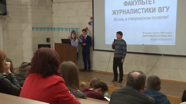 «Журфак открывает двери». Неспециальный репортаж о дне открытых дверей на факультете журналистики ВГУ подготовили студенты 2-го курса направления «Телевидение» Анастасия Левачкова, Анжела Курипко и Полина Волкова в рамках дисциплины «Выпуск телепередачи». Преподаватель Виктор Дремачёв, режиссер и оператор Валерий Заборовский.