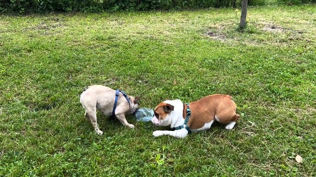 БУЛЬДОГИ ИГРАЮТ В БУТЫЛОЧКУ // Игры на полянке
