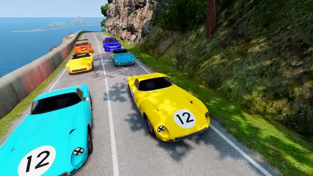 Мультики для детей. Машинки прыгают и летают с большой горы