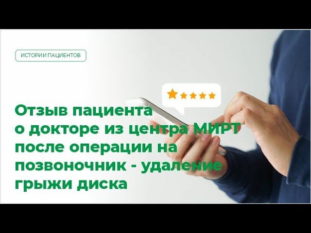Отзыв пациента о докторе из центра Мирт после операции на позвоночник - удаление грыжи диска.