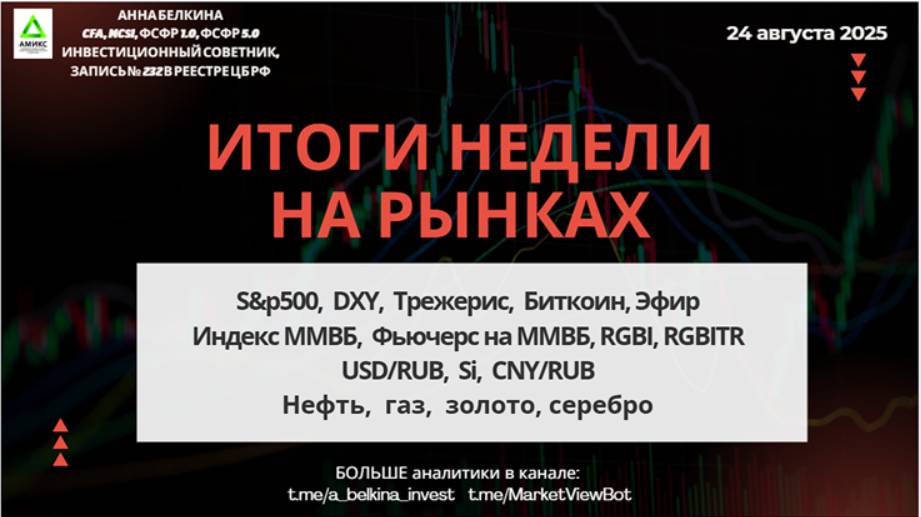 Итоги недели – 24 августа 2025 #SP500 #DXY #RGBI #MICEX #IRUS #USDRUB #Brent #Gas #Gold #BTC #ETH