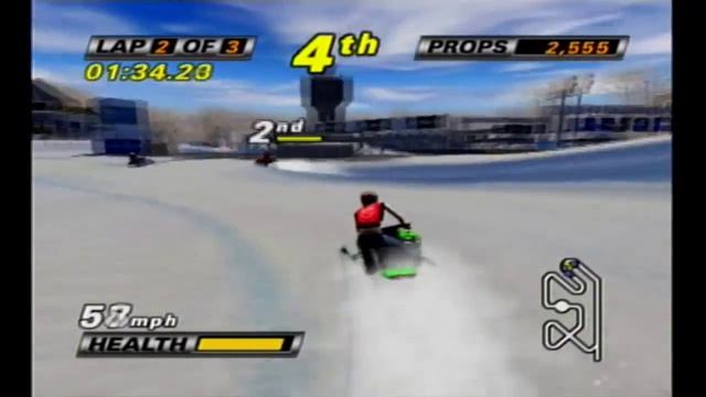 Whiteout is a 2002 snowmobile racing game published by Konami. Pick a character, buy a sled, and get racing around stadium and cross-country events. Along with taking the checkered flag, you can go off ramps and bust some sick tricks, along with smashing stuff in the levels, to get more 'props' and get more money after the race. You can also collect speed or shield powerups during the laps to get a boost of speed or get some protection from the AI. #Whiteout #LetsPlay #Insetik47