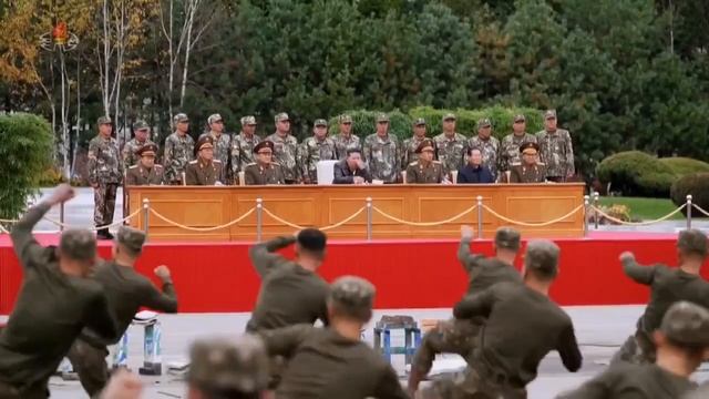 Ким Чен Ын наблюдает за парадом элитного подразделения, воевавшего в России