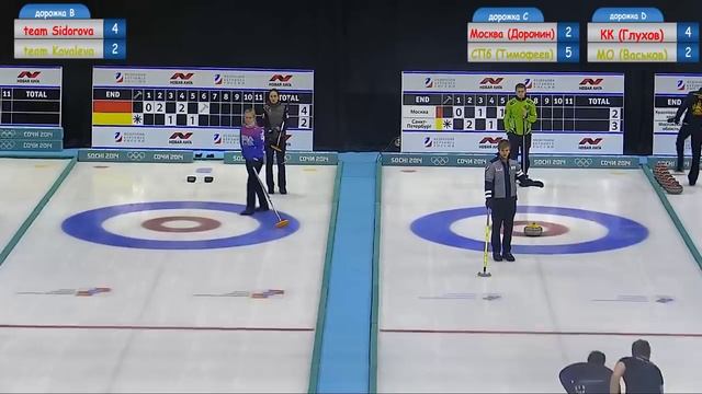 дорожка В: команда Сидоровой - команда Ковалёвой дорожка С: Москва (Доронин) - Санкт-Петербург (Тимофеев)