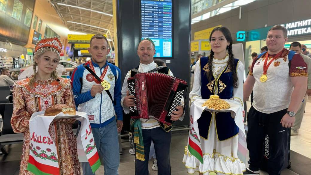 Встреча в Казанском международном аэропорту борцов - участников Всемирных игр кочевников