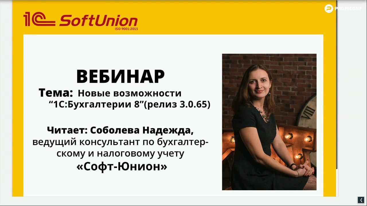 Запись вебинара. Новые возможности 1С:Бухгалтерии 8 (релиз 3.0.65)