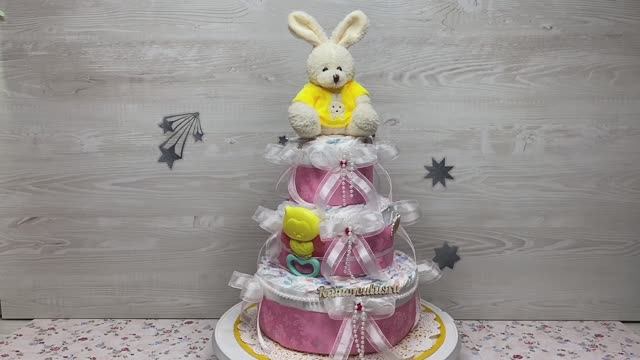 Торт из подгузников с зайчиком