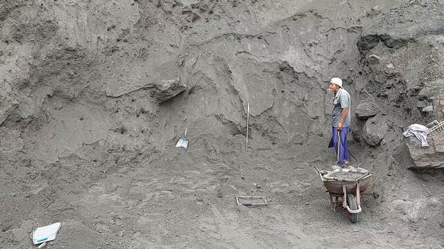 Строительство, шахтёры добывают песок