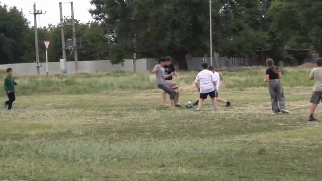 Сельские мальчишки и девчонки отлично играют в футбол