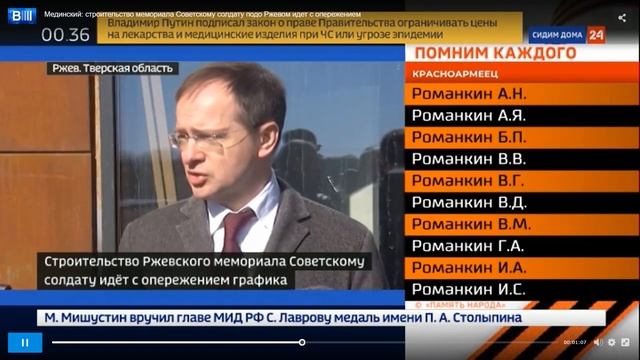 Мединский_ строительство мемориала Советскому солдату подо Ржевом идет с опережением