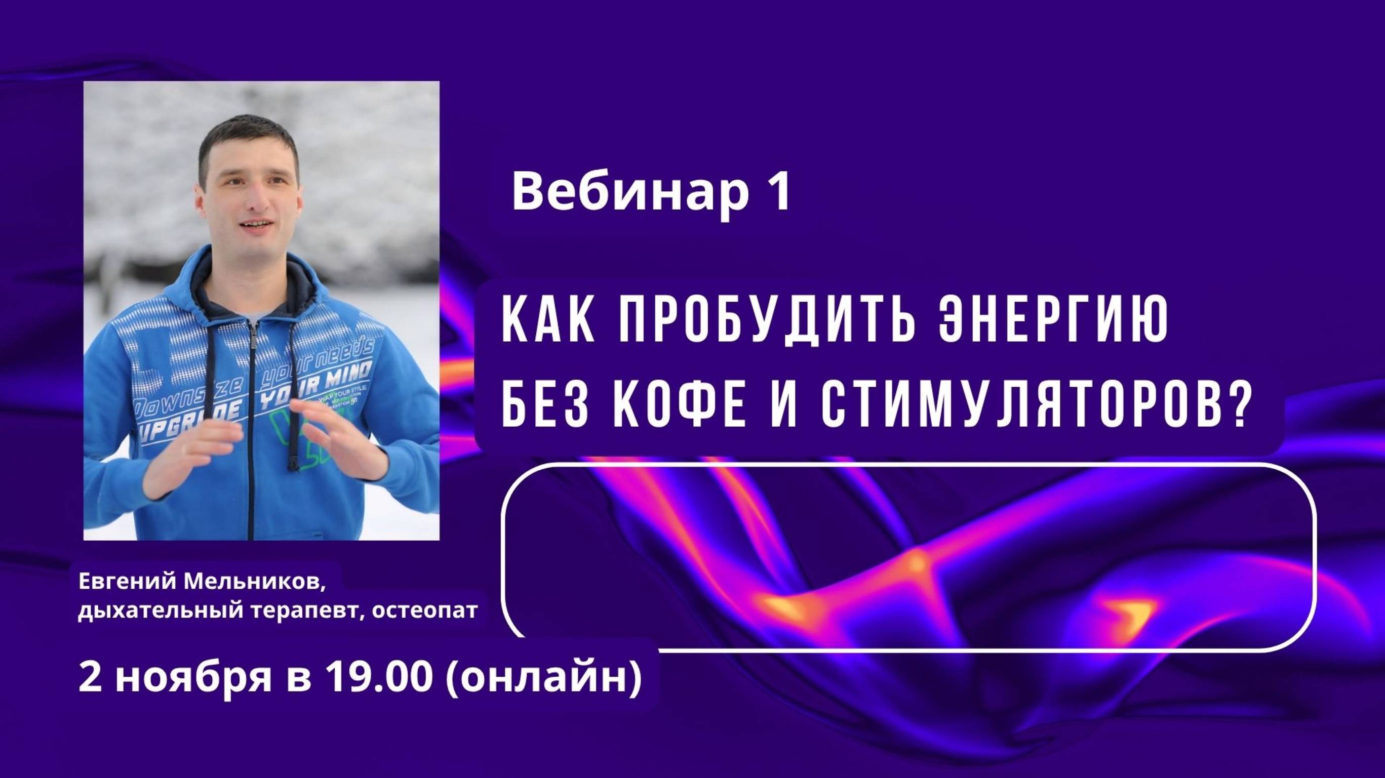 Ведущий Евгений Мельников: дыхательный терапевт, остеопат, создатель Центра осознанного дыхания и саморегуляции Подключиться к telegram каналу Центра https://t.me/siladyhania Практический Интенсив "Сила дыхания. Активация энергии" https://siladyhania.ru/intensive1 Зарегистрироваться на бесплатные прямые эфиры: https://siladyhania.ru/lives Тайм-лист 0:08 - Яркая история изменений 07:17 - О какой энергии мы говорим? Что такое "энергия" в теле человека 11:17 - Практика Очищающее дыхание 13:37 - молекула АТФ как "валюта" энергии в теле 18:05 - Алгоритм энергетизирующего дыхание, базовое понимание 20:00 - Практика циклического дыхания (основа энергетизирующего дыхания) 23:10 - про намерение 24:00 - Практика "20 связных дыханий" 31:56 - Практика энергетизирующего дыхания "Дровосек"