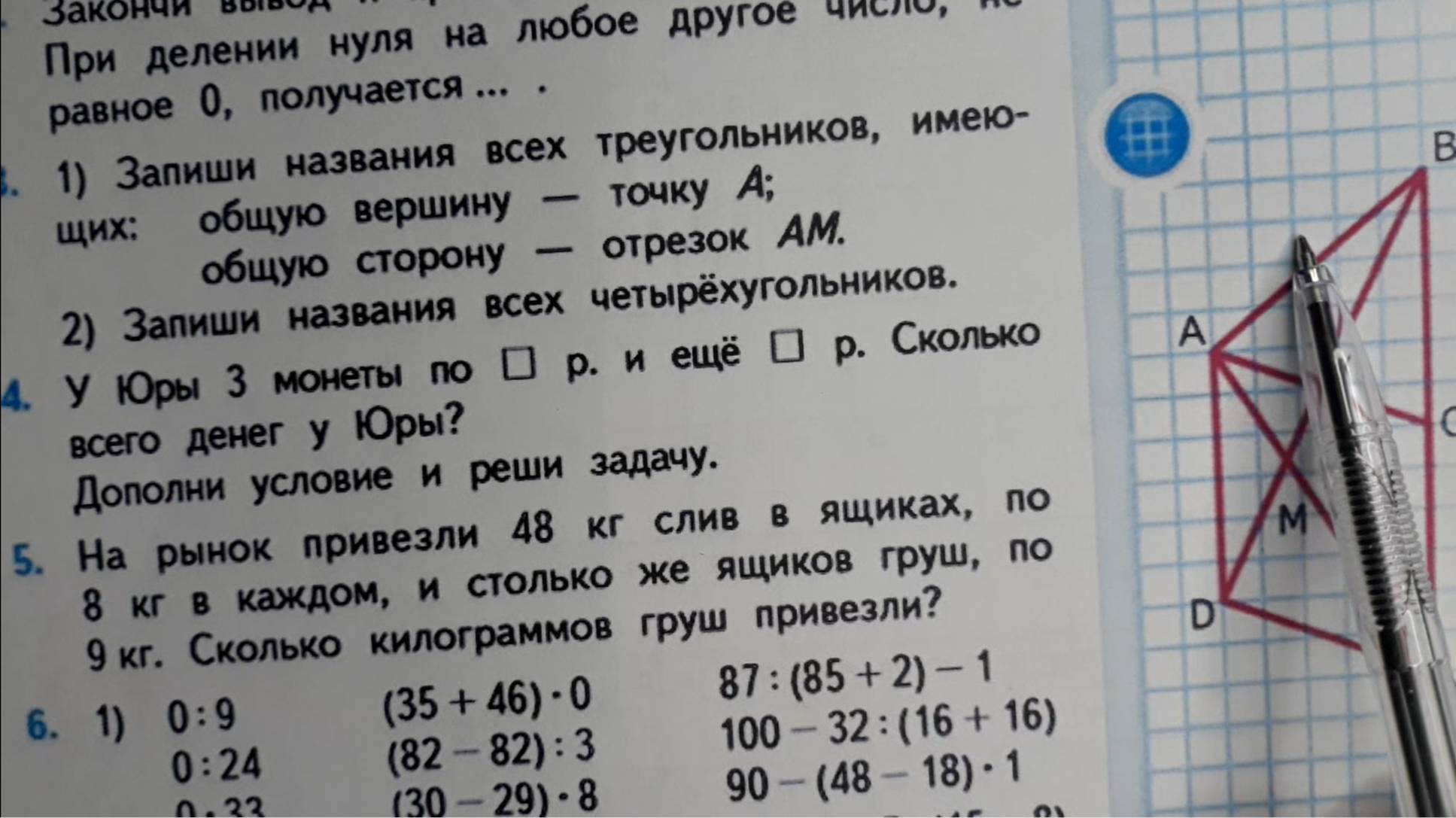 Начальная школа, название треугольников, названия сторон треугольника, название каждого треугольника, общие вершины треугольника, название каждого четырехугольника