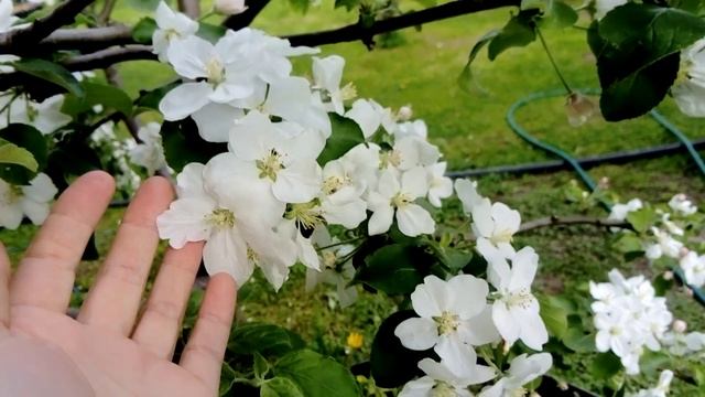 Зацвела наша яблоня двухлетка первый раз.