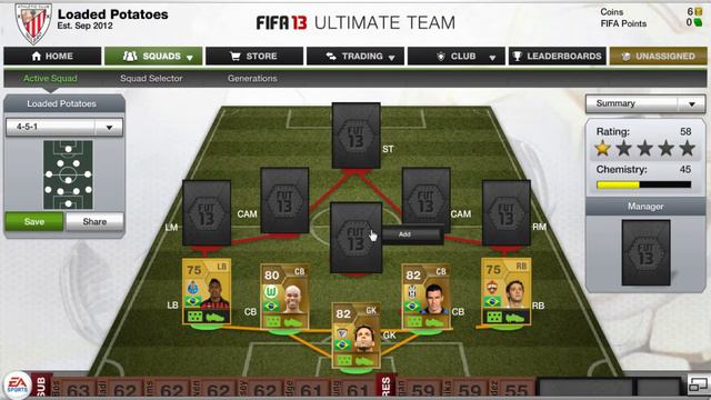 A Fifa 13 Ultimate Team hybrid squad builder with brazilian players, and players from the Russian League. Total Cost of the Team - 25750 TEAM RATINGS Overall- 80 Offense - 82 Midfield - 80 Defense - 78 Goalkeeper - 82 PLAYER PRICES!!! ST - Doumbia - 3800 CAM - Carlos Eduardo - 2600 CAM - Honda - 1300 LM - Michel Bastos - 6000 RM - McGeady - 1700 CM - Romulo - 300 LB - Alex Sandro - 450 CB - Naldo - 2700 (Steal) CB - Lucio - 5600 RB - Mario Fernandez - 500 GK - Artur Moraes - 800 Total - 25750 Please ╔═╦══╦══╦══╦═╦═╦╦══╦╗ ║╔╣║║║║║║║║║═╣║║╠╗╔╣║ ║╚╣║║║║║║║║║═╣║║║║║╠╣ ╚═╩══╩╩╩╩╩╩╩═╩╩═╝╚╝╚╝ And ╔╦╦══╦══╦═╦╗ ║╔╣║║╠╗╔╣═╣║ ║║║╔╗║║║║═╬╣ ╚╝╚╝╚╝╚╝╚═╩╝ AND ╔═╦╗╔╦╗╔═╦═╦╦╦╦╗╔═╗ ║╚╣║║║╚╣╚╣╔╣╔╣║╚╣═╣ ╠╗║╚╝║║╠╗║╚╣║║║║║═╣ ╚═╩══╩═╩═╩═╩╝╚╩═╩═╝ For More videos!!!