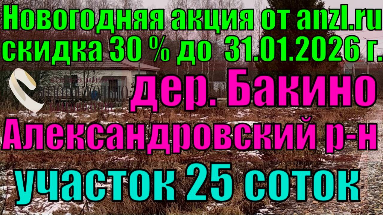 АКЦИЯ!!! 30% скидка!!! Продается участок 25 соток в д.Бакино, Александровский р-н, Владимирская обл.