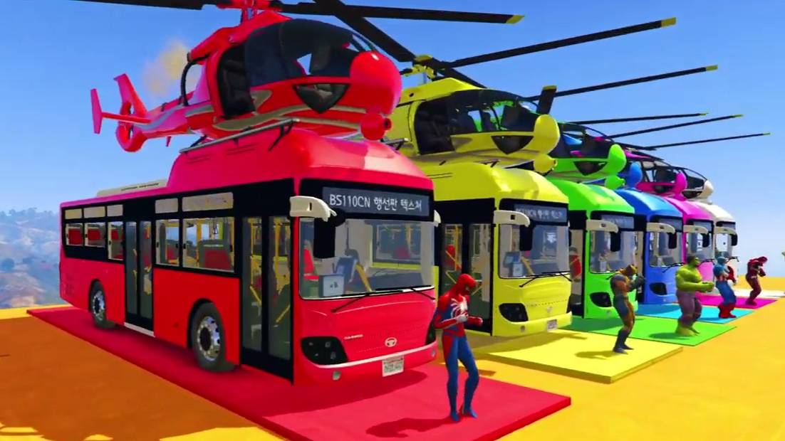 АВТОБУСЫ и ВЕРТОЛЕТЫ ЧЕЛОВЕК-ПАУК с супергероями для детей мультик про машинки