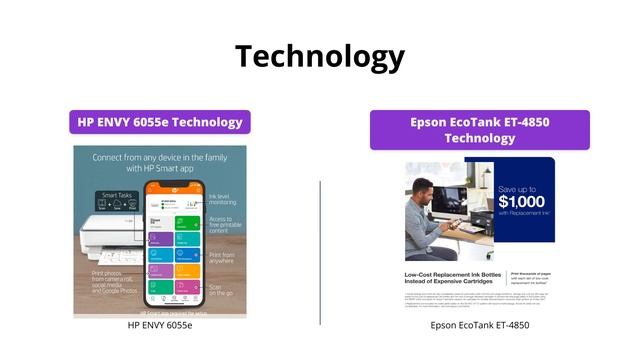 Compare HP ENVY 6055e All-in-One Wireless Color Printer with bonus 6 months free Instant Ink (223N1A) at https://buy-sm.art/dp/B08XYRVSRT and Epson EcoTank ET-4850 Wireless All-in-One Cartridge-Free Supertank Printer with Scanner, Copier, Fax, ADF and Ethernet – The Perfect Printer Office - Black at https://buy-sm.art/dp/B096N9R8Z5 Watch the video to know which printer you should get!