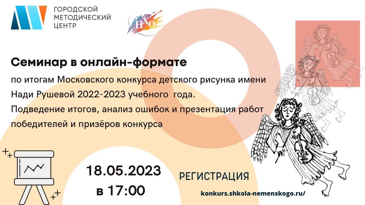 Семинар в онлайн-формате по итогам Московского конкурса детского рисунка имени Нади Рушевой 2022-2023 учебного года. Подведение итогов, анализ ошибок и презентация работ победителей и призеров конкурса