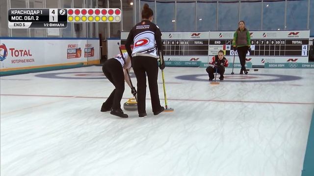 Краснодарский край 1 (Сидорова) - Московская область 2 (Котельникова) Результаты онлайн, турнирная таблица и пр. по ссылке: http://curling.ru/results/39618-chempionat-rossii-sredi-jenskih-kom-39617