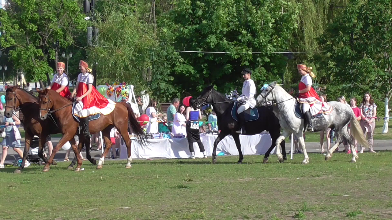 Показательное выступление: Девушки и лошади.