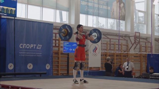 Чадкова Ольга на Первенстве России по тяжелой атлетике среди юношей и девушек 13-17 лет. После рывка 11, но собралась и в итоге 9 место.