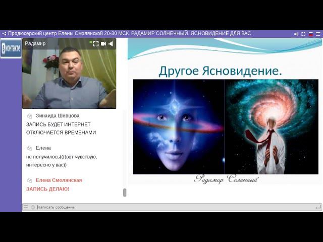 Спецкурс по Ясновидению https://lenasmol.autoweboffice.ru/?r=ordering/cart/as1&id=836&clean=true&lg=ru Диагностика с Радамиром Солнечным 60 минут https://lenasmol.autoweboffice.ru/?r=ordering/cart/as1&id=57&clean=true&lg=ru Подробности оформления заказа здесь https://goo.gl/VWixks #Ясновидение #ясновидящий #диагностика_ясновидящего #открыть_ясновидение #третий_глаз ******************** Контакты: Skype: mamalenasm Электронная почта: es101@list.ru