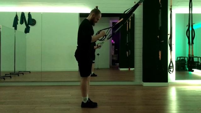 TRX Single Leg Back Lunges (или Выпады назад на одной ноге с TRX) — это усложненная версия классического выпада, которая добавляет элемент баланса, устойчивости и требует большей координации. Нагрузка здесь комплексная, но с четким акцентом. Основные целевые мышцы: 1. Квадрицепс (четырехглавая мышца бедра) опорной ноги: Это главный движитель. Именно она выполняет основную работу по контролируемому опусканию и мощному подъему тела. Нагрузка на нее максимальна. 2. Ягодичные мышцы опорной ноги: Активно включаются при разгибании тазобедренного сустава, когда вы возвращаетесь в исходное положение. 3. Большая приводящая мышца (внутренняя поверхность бедра) опорной ноги: Работает как стабилизатор, помогая удерживать положение ноги. Ключевые мышцы-стабилизаторы: · Мышцы кора (пресс, косые, разгибатели спины): Несут огромную нагрузку по стабилизации туловища. Они не дают вашему тазу вращаться и наклоняться в стороны, удерживая корпус прямым. Это основная сложность упражнения. · Стабилизаторы таза и бедра опорной ноги (средняя и малая ягодичные): Критически важны! Они не позволяют колену и бедру опорной ноги заваливаться внутрь (это явление называется "валгус колена"). Если это происходит, значит, эти мышцы недостаточно сильны. · Мышцы задней поверхности бедра и икроножные работают в статике для поддержания баланса. Роль TRX в этом упражнении: TRX здесь выполняет вспомогательную и стабилизирующую роль. Петли нужны не для того, чтобы на них "висеть" и убирать всю нагрузку. Их задача: · Помочь сохранить равновесие. Это позволяет сконцентрироваться на технике, а не на том, чтобы не упасть. · Обеспечить тактильную обратную связь. Вы чувствуете легкую поддержку, которая помогает контролировать движение вниз и вверх. · Смягчить нагрузку (легко регулировать). Если сложно, можно сильнее опереться на руки; если легко — держать петли кончиками пальцев или вообще не использовать.