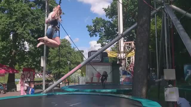 Аня и Надя на батуте в парке развлечений «Юность»