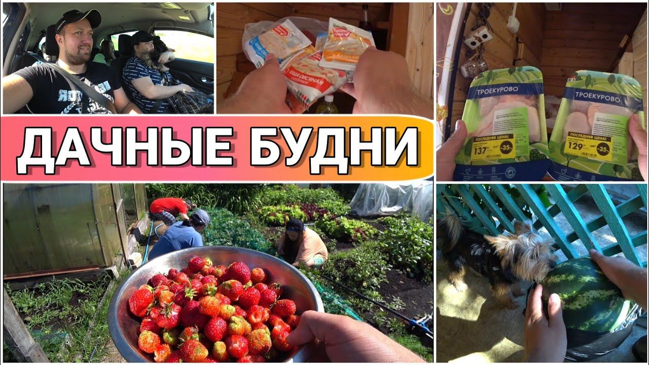 ВЛОГ! Поехали на дачу всей семьёй//Обзор покупок/Наросло много клубники/Наш огород/ жизнь Голдобиных