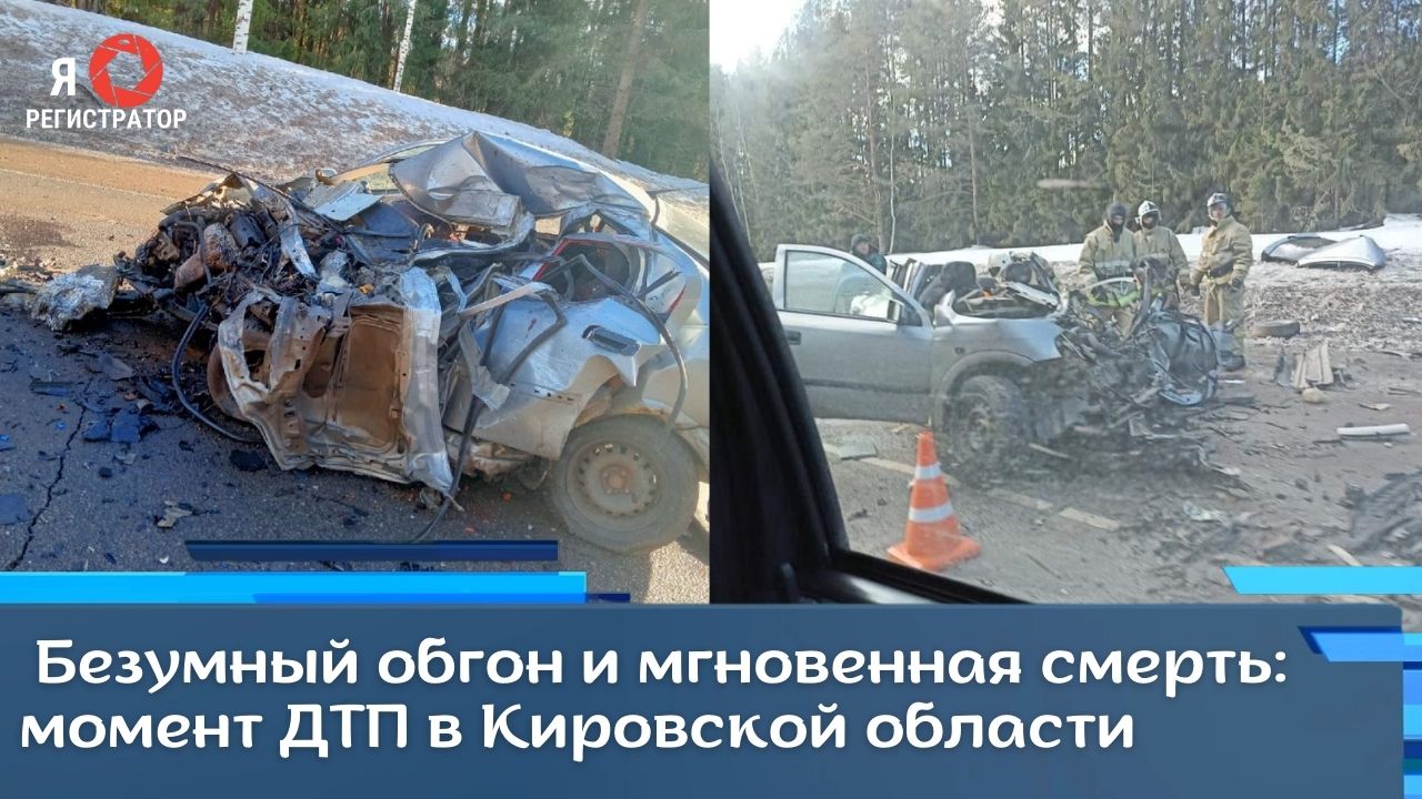 Безумный обгон и мгновенная смерть: момент ДТП в Кировской области 20.03.2022