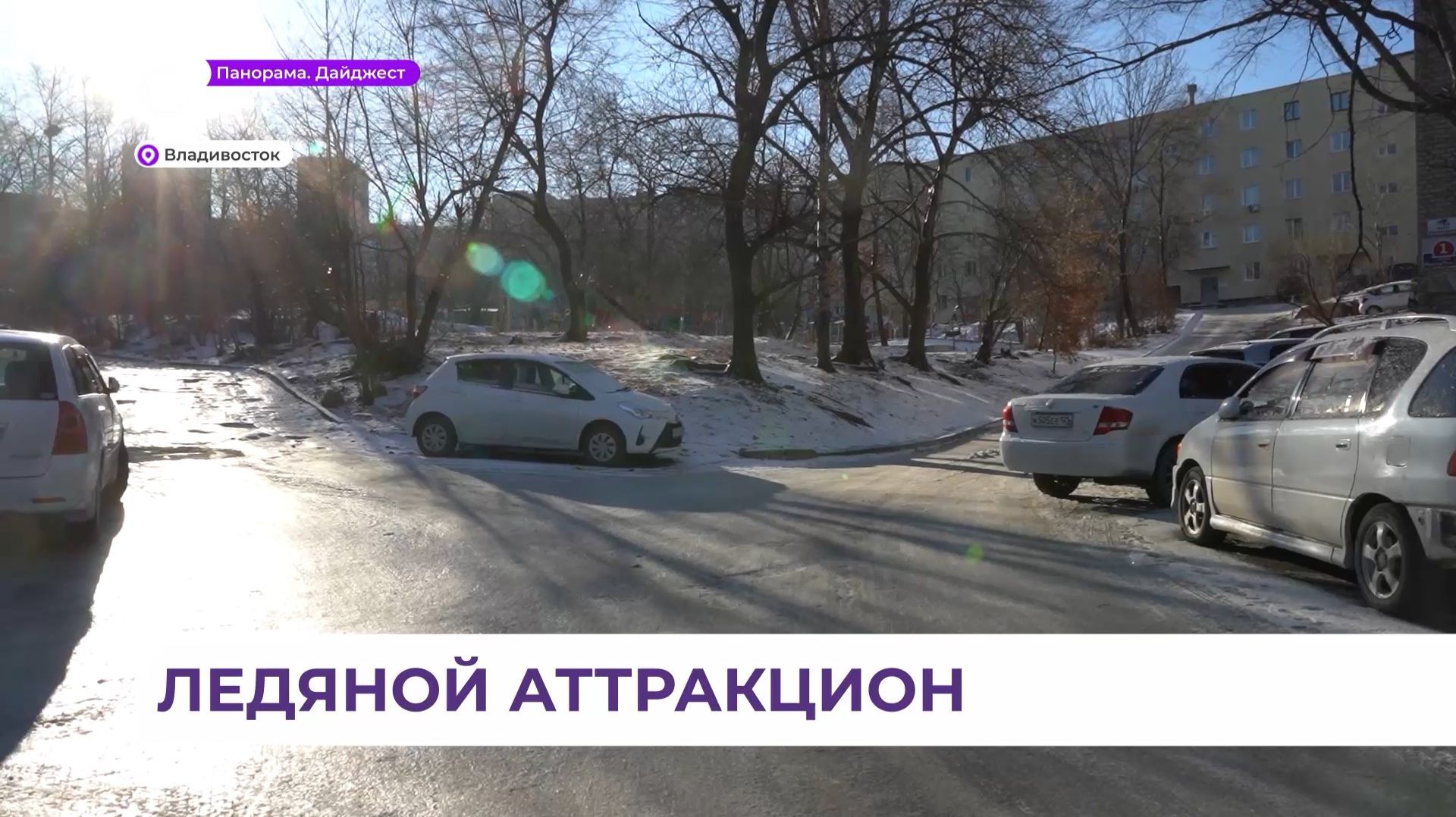 Ледяным аттракционом стало утро во Владивостоке
