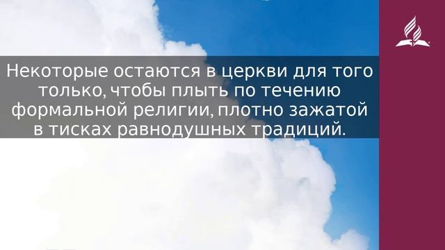 Се, стою у двери и стучу: если кто услышит голос Мой и отворит дверь, войду к нему и буду вечерять с ним, и он со Мною... Имеющий ухо да слышит, что́ Дух говорит церквам (Откр. 3:20, 22). В то время как христиане филадельфийского типа входят в открытую дверь и наслаждаются замечательным общением с Богом, принадлежащие к лаодикийской церкви заперлись в своем равнодушном самодовольстве. Что закрывает дверь человеческого сердца? Иногда она закрывается сознательным грехом, иногда — ослабляющей силы болезнью, иногда — неудачей и поражением, иногда — изнуряющей тяжелой утратой. Иногда дверь закрывается тем, что человек ставит себя в зависимость от спасения посредством дел, которая приводит к духовной бесчувственности и ложному ощущению духовного благополучия. Часто христиане лаодикийского типа оказываются в духовном забвении, и из-за равнодушия их собратьев-лаодикийцев немногие замечают то, в какой ситуации они оказались... и никого это по-настоящему не волнует. Некоторые остаются в церкви для того только, чтобы плыть по течению формальной религии, плотно зажатой в тисках равнодушных традиций. Только посредством силы Святого Духа лаодикийские христиане могут открыть дверь и снова пригласить Иисуса в свою жизнь. Нелегко и не так просто избавиться от лаодикийского духа. Он подобно клею обволакивает жизнь и церковь. Эллен Уайт рассказывает о лагерном собрании, происходившем в Сиракузах, в штате Нью-Йорк, на которое собрались христиане лаодикийского типа. «Собрание было неплохим; однако не было видно глубины и искренности чувств, которые свидетельствуют о присутствии Божьего Духа и производят неизгладимое впечатление. Люди слишком удовлетворены собой, ощущается апатия, которая приводит к духовному параличу. К ним можно применить весть Лаодикии, ибо, хотя они довольны своим знанием истины, в них отсутствует подлинная любовь и вера» (Ревью энд Геральд, 28 октября, 1884 г.). Для христиан лаодикийского типа есть надежда. Огонь пробуждения Святым Духом может загореться снова. Благодаря ревностным молитвам, созданию малых групп, исполненному Духом служению тиски лаодикийского состояния могут быть расторгнуты навсегда. МОЛИТВА Господи, пробуди меня от духовной летаргии силой Твоего Духа, которая подобна землетрясению. Помоги мне сиять подобно огню в Лаодикии. https://esd.adventist.org/library/periodicals/ezhednevnyie-chteniya/ #адвентисты #АдвентистыСедьмогоДня #Церковь #ЦерковьАдвентистовСедьмогоДня #ЦерковьХристианАдвентистовСедьмогоДня