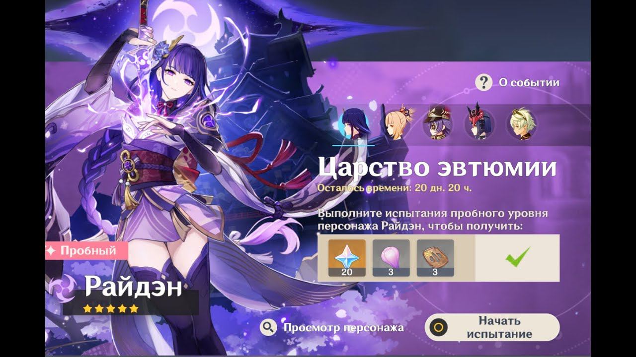 Genshin Impact/ Тестовый забег Райдэн, Ёимия, Беннет, Кудз Сара/ 40 гемов 15000 моры и кучка ресов