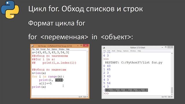 25 Цикл for. Обход списков и строк Python