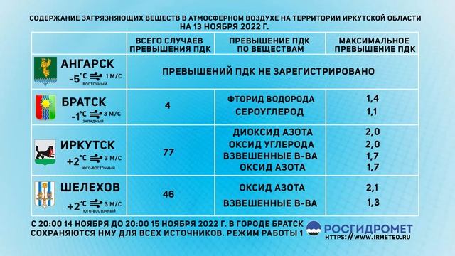 [14.11.2022] Мониторинг состояния атмосферного воздуха 11-13.11.2022