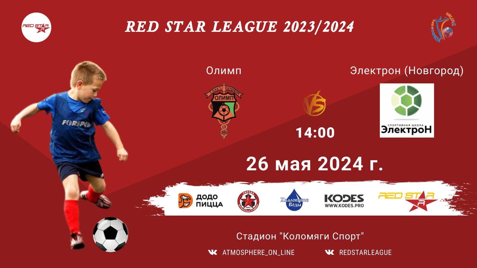 Red Star League среди команд 2013 г.р. (U11) 26 МАЯ АПРЕЛЯ 2024 САНКТ-ПЕТЕРБУРГ, Стадион "Коломяги-Спорт" ФК "Олимп" - ФК "Электрон" (Новгород)/Red Star League, 26-05-2024 14:00